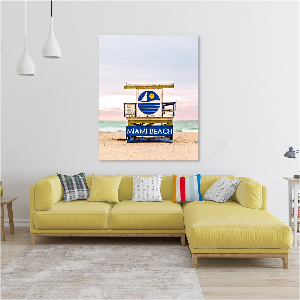 Miami Beach is a place like no other. For several miles along Ocean Drive, unique lifeguard towers sit every block. Each is different and beautiful. This beach hut celebrates the city itself.