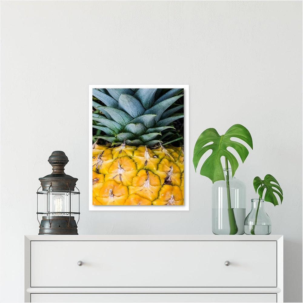 The pineapple is a traditional symbol of welcome and hospitality. This beautiful close up of a pineapple I grew in my back yard (and enjoyed right after photographing!) is a great choice for an entry print to brighten your home and welcome guests.