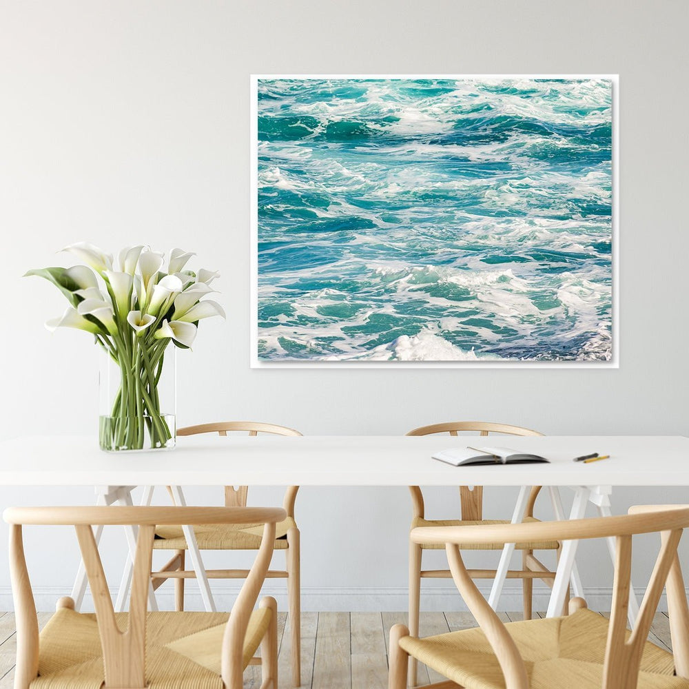 Foamy waves and amazing turquoise Caribbean water. This image creates a relaxed but energetic feel in any space. This image was created in gorgeous Puerto Rico!